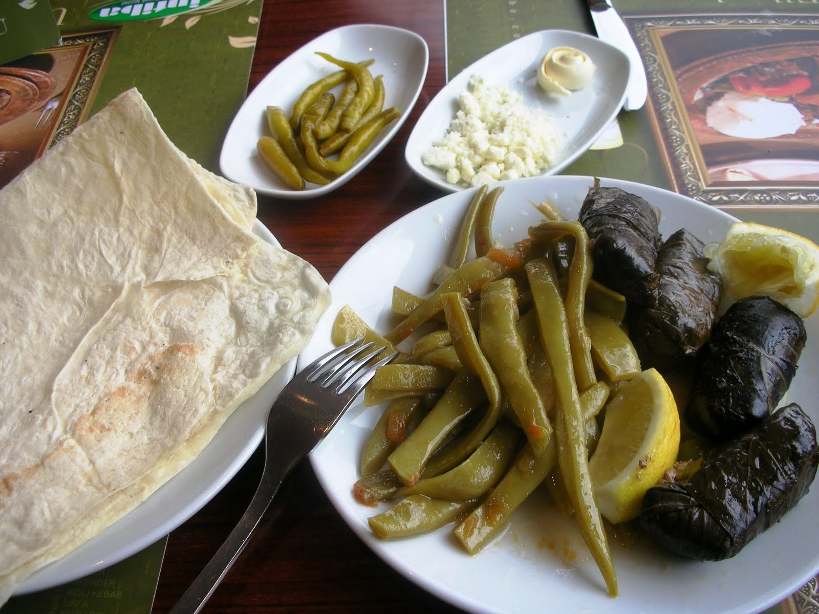 I couldn’t help sharing a few more photos from last week’s Istanbul trip. The generosity and the hospitality of Turkish people are apparent in everyday life. For example, go to a simple traditional restaurant (where freshly made salads, vegetables cooked in olive oil, delicious kebabs served) and you are greeted with a warm smile and a generous portion of flat bread, salad or pickled peppers, butter and crumbled feta cheese from the house. Their Turkish version of “fast food” consists of lovely vegetables like green beans cooked in olive oil, or stuffed grapevine leaves, white bean salad with slices of onion, tomatoes and spices (sumac and red pepper flakes over the top are common) and delicious meatballs served over the flat bread with grilled peppers, tomatoes. Ayran, a mixture of natural plain yoghurt with water and a pinch of salt is a traditional drink to accompany this feast. Refreshing and very healthy too.