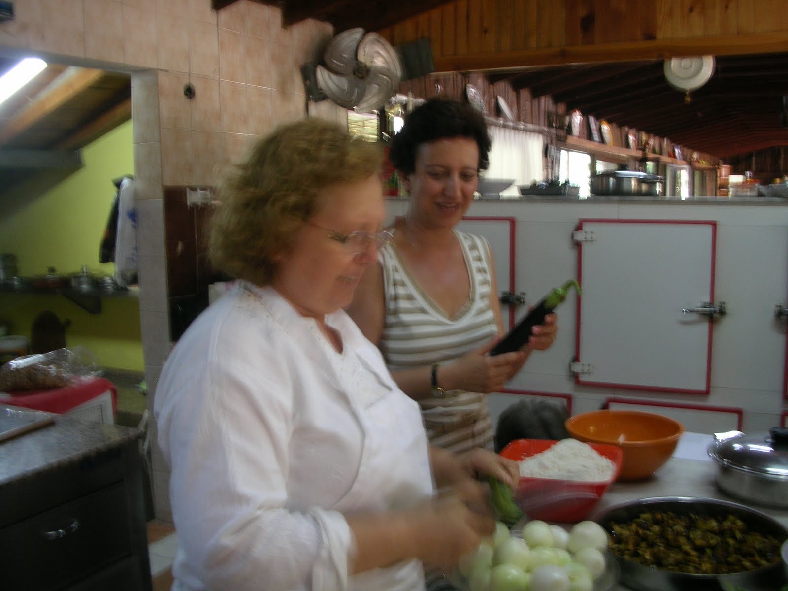 Time to tuck in! Here is our generous lunch spread with all the wonderful Aegean style cooking; stuffed zucchini flowers, grapevine leaves, yoghurt with cucumber and dill, eggplant and peppers cooked in olive oil, Turkish style dried beans cassesole and many more – cok guzel!:)